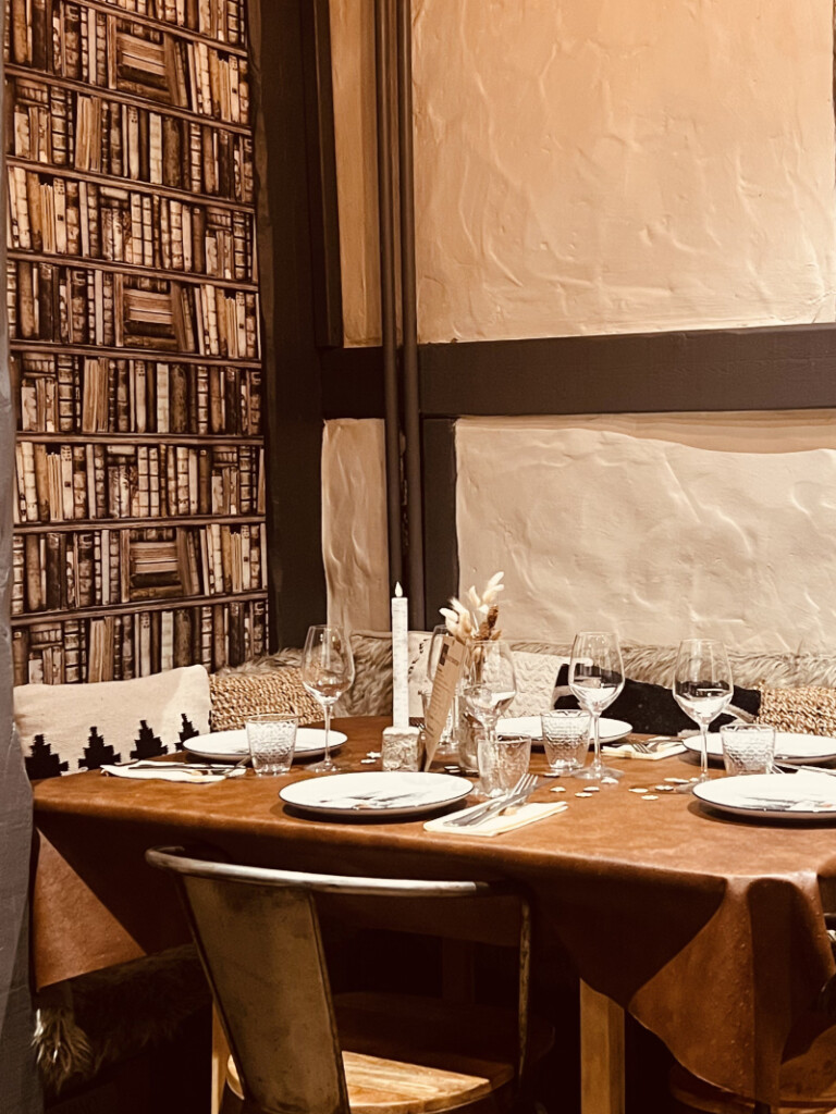お店はとても素敵で、お料理も美味しかったです。内装は洗練された暖かい雰囲気でした。レザーのテーブルクロスに、ドライフラワーを飾ったテーブル。生成とブラウン系で統一されておしゃれでした。