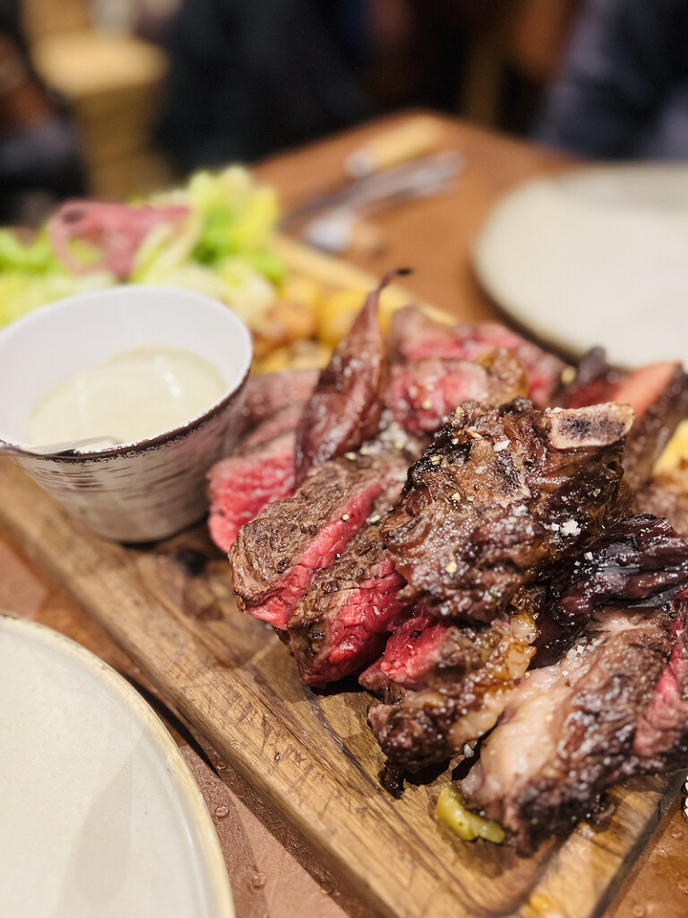 前菜のサーモンもとても素敵な盛り付けで、少し大人な味のソースがワインと合いました。メインは肉を注文しましたが、焼き加減などは注文できます。ちょっと量は多かったですが、美味しくて満足!スジになっているところは全て外して食べました。チーズ味のソースがより肉をまろやかにしてくれました。デザートはアレンジされたティラミスを食べましたが、カップに入ったクリエイティブな一品でした。