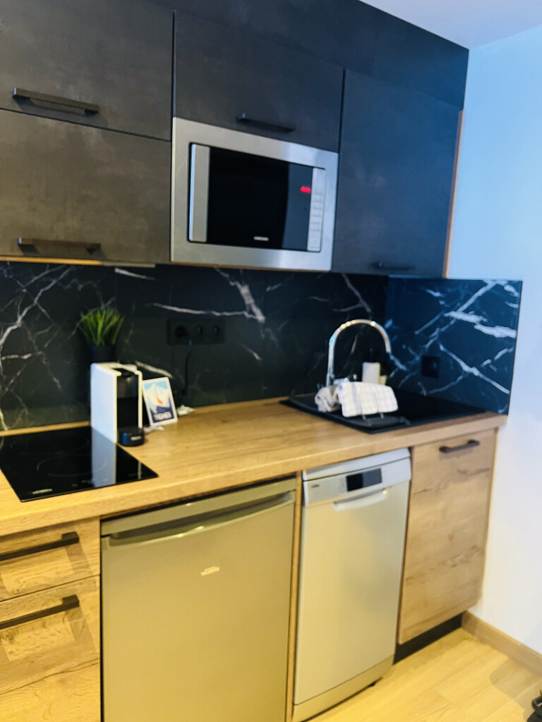 お湯がすぐ出るし、食洗機、ミニ冷蔵庫などが完備され便利。基本的なキッチンツールは揃っています。